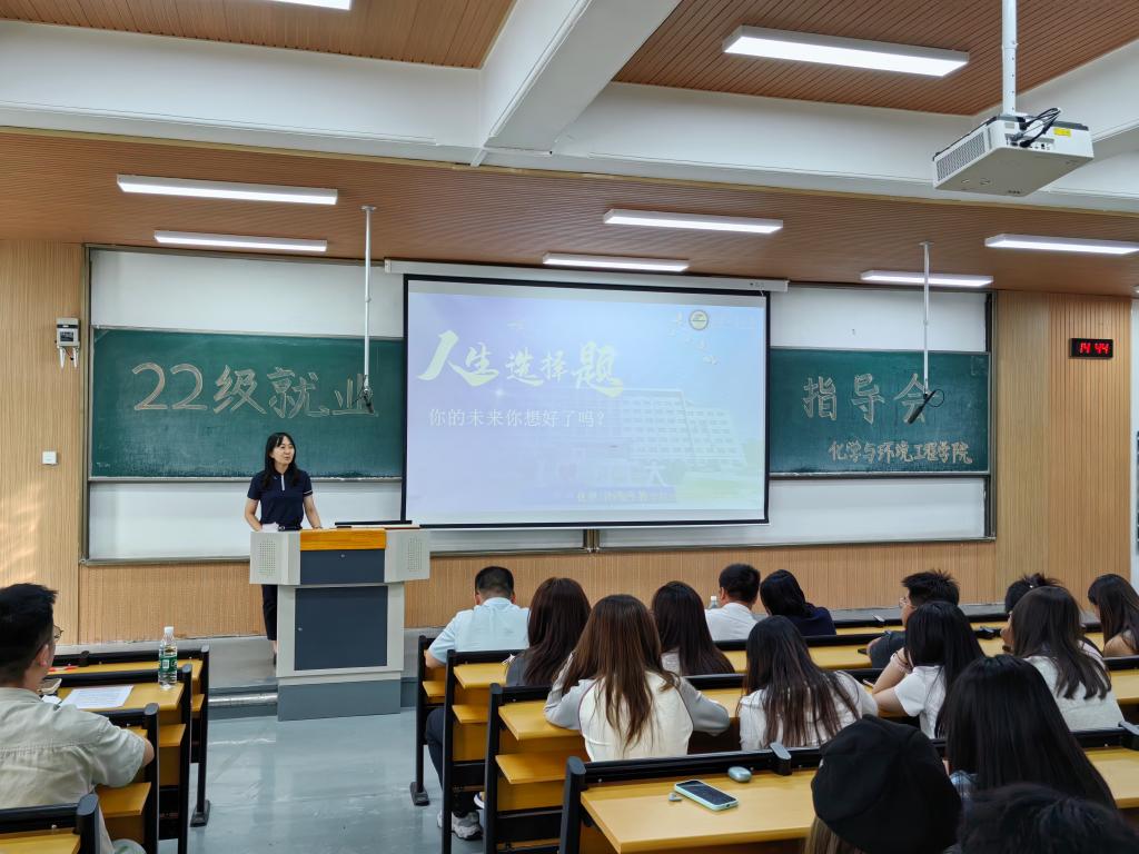 为精准引导学生明确未来发展路径,科学规划职业方向,化学与环境工程学院于近日在1A-221教室召开2022级本科生就业指导大会。化工学院院长赵永华、党委副书记兼副院长贺巍、院长助理冯效迁、2022级辅导员李蕊出席会议,全体2022级本科生参会。